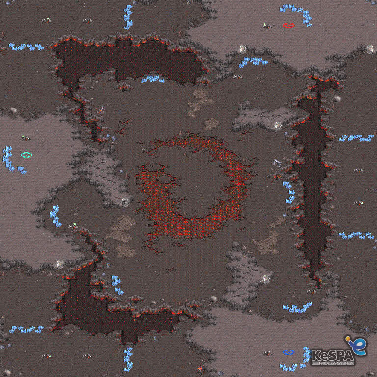- 초반에는 중앙에서 전투가 이루어지지만 중반을 넘어가면 외곽 멀티를 가져가야 하므로 맵 전체적으로 난전이 펼쳐진다.