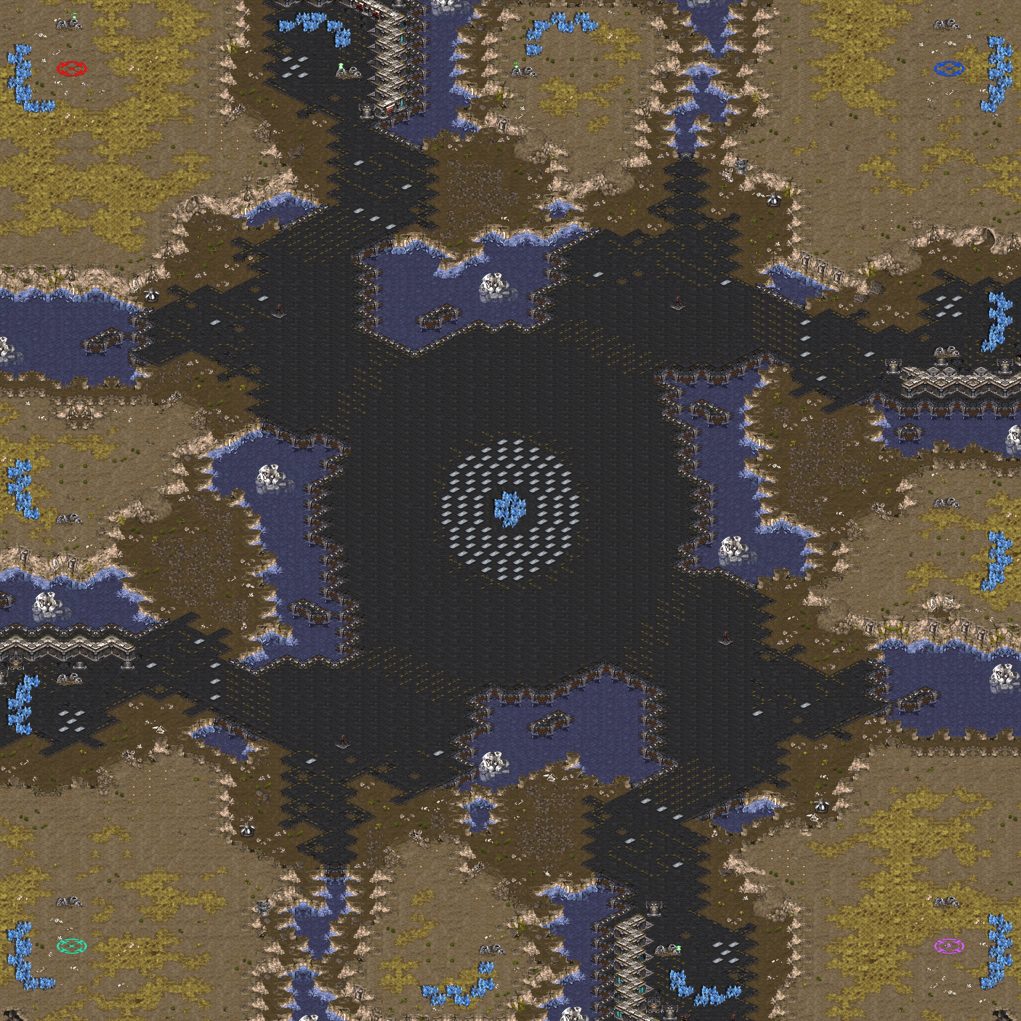 - 본진, 앞마당, 제2멀티가 과거의 공식맵 스타일로 배치된 힘싸움 맵이다.