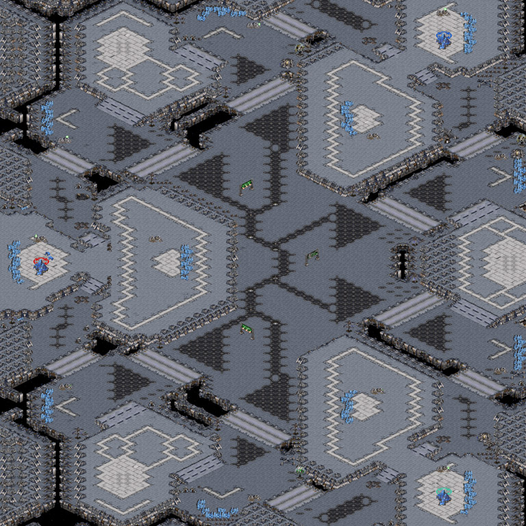- 외곽에 멀티가 몰려있으므로 외곽을 둘러서 진출하거나 방어하는 것이 중요하지만, 멀티끼리의 최단 루트와 대병력이 움직일 공간은 중앙으로 뚫려 있으므로 자원이 없는 중앙을 먹으면 병력의 전술적 운영이 편해진다.
