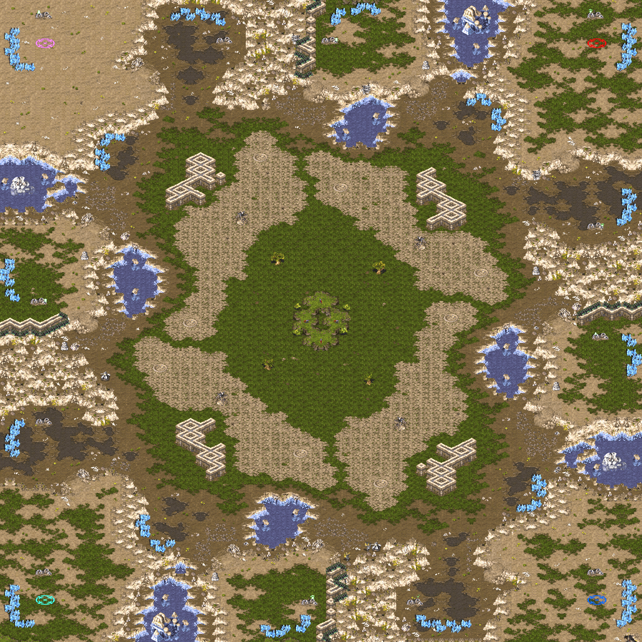- 무난한 형태의 4인용 힘싸움맵으로, 멀티 진입로가 길목 형태로 되어 있어 전술적인 움직임이 중요한 맵이다.