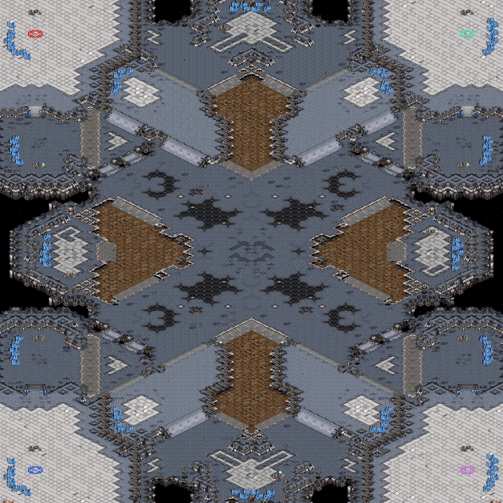- 본진은 3층, 앞마당은 2층 높이이며 앞마당 앞쪽에 1층 높이의 분지 지형이 놓여있다(폭은 2칸). 이는 앞마당 입구의 방어건물이 히드라리스크, 드라군, 마린 등으로 초반에 공격받을 때 50% 공격회피를 받을 수 있게 하여 초중반을 안정적으로 넘길 수 있게 해주는 장치이다.