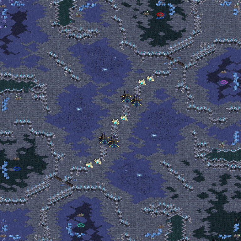 - 멀티버스는 다중우주라는 뜻이며 대각선을 기준으로 두 개의 전장으로 분리된 맵이다. 1/3 확률로 상대와 같은 대륙에 배치되며 2/3 확률로는 다른 대륙에 배치된다. 다른 대륙에 배치된경우 공중거리가 가깝게 배치될 수도 있고 지상과 공중 모두 먼 대각선에 배치될 수도 있다. 스타팅 위치에 따라 경기 양상이 극명히 갈릴 수 있으며 그에따른 선수들의 전략적 판단이 요구되는 맵이다.
