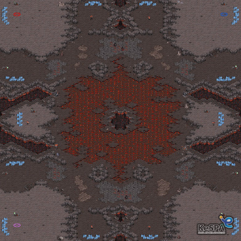 - 평범한 구성의 힘싸움맵으로 가로, 세로간 러시거리는 비슷하나 멀티 배치와 언덕 지형 활용 등에서 위치에 따라 경기의 다양성이 발생하게 된다.