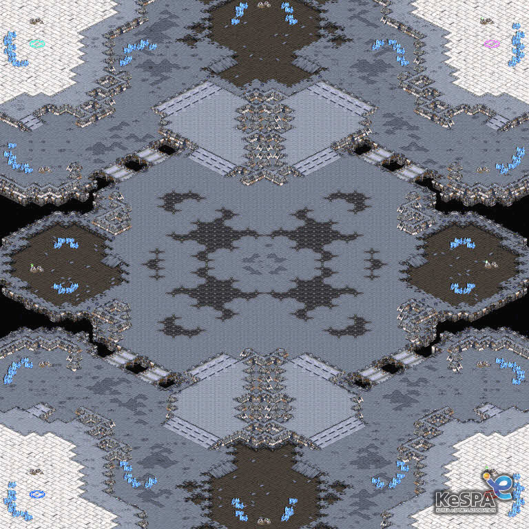 - 앞마당 멀티 이외에도 3, 6, 9, 12시에 가스 멀티가 존재하여 대규모의 물량전이 기대되는 맵이다.