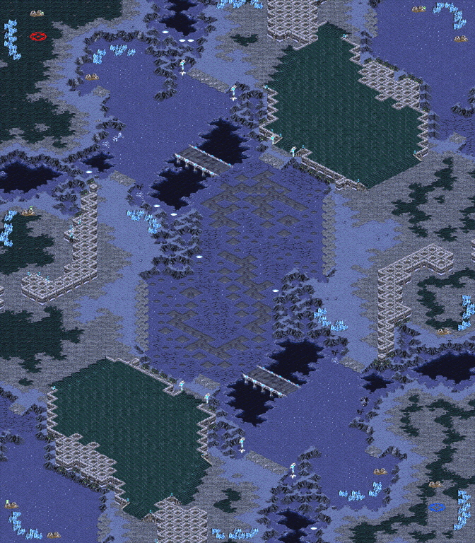 - 가장 짧은 러시경로는 얇은 다리로 되어있기에 초반 압박용 큰 병력을 이동시키기는 힘들다.